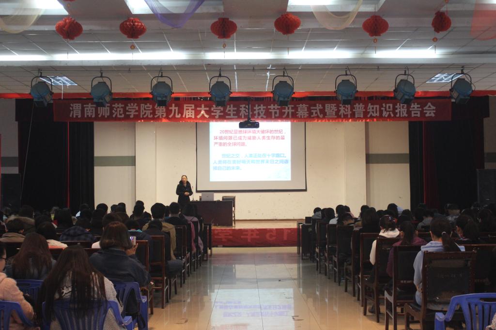 为了加强校园科技文化建设,促进大学生课外科技学术活动蓬勃发展,增强广大学生的科技创新意识,11月18日下午,我校在一餐三楼举办第九届大学生科技节开幕式暨科普知识报告会。校党委委员、组织部部长杨小渭,学校学术委员会主任、教务处处长王菊霞,社科处处长李明敏,校团委副书记马耀斌出席活动,各二级学院学生代表400余人参加了此次活动。开幕式由校团委副书记姚明亮主持。