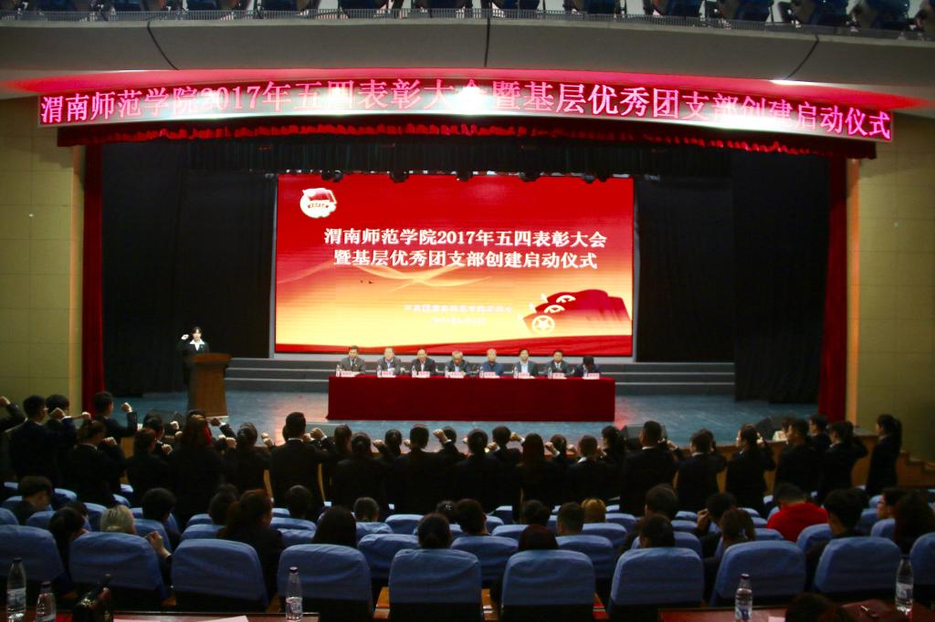 活动在庄严的国歌声中和昂扬的团歌声中拉开帷幕。党委委员、组织部长杨小渭等与会领导宣读了省、市共青团表彰文件、《关于表彰2016年度五四红旗团委(团总支)、五四红旗团支部、优秀共青团干部、优秀共青团员的决定》、《关于表彰2016年社会实践先进单位和先进个人的决定》、《关于表彰2016年度校园媒体新闻宣传工作先进集体、最具影响力报道、先进个人、优秀记者、优秀编辑的决定》、《关于表彰2016年度志愿服务先进集体、优秀项目及优秀志愿者的决定》、《关于公布首批创建五四红旗团支部入选名单的通报》;优秀教师团干部代表张金娟、优秀共青团员代表周相云、入选创建基层优秀团支部书记代表张佳楠分别从“学习总书记讲话 争做合格共青团员”教育实践活动实施情况、如何成为一名合格共青团员、基层团组织建设提升等方面做了总结和表态发言;入选首批创建五四红旗团支部书记集体宣誓“自愿申请创建、按照标准建设、提升组织活力、发挥榜样示范”。