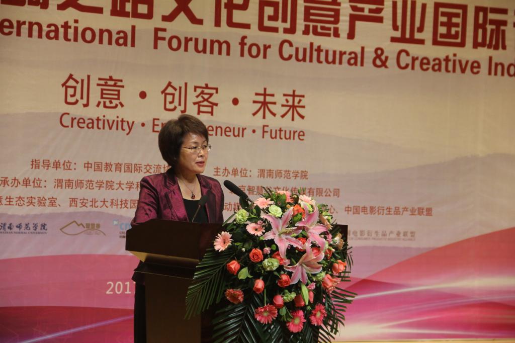 沈雪松在致辞中指出,此次论坛“创意·创客·未来”主题,内含三个维度、三个目标,秉承中国教育国际交流协会文化创意产业分会宗旨,掀起我国大量培养面向国际市场的中国文化创意人才教育高潮,掀起弘扬优秀传统文化、以华夏文化促产业转型的中国创业高峰,掀起校园创意、创新、创造的校园文化新气象。中国金粟山丝绸之路文化创意产业国际论坛,在全球视野下探求中国文化创意产业发展,国家战略视角下唤醒高等院校的文化创意使命,具有特殊的意义和深刻的涵义。她代表中国教育国际交流协会对主办这次论坛的欧宝娱乐官方app表示感谢,感谢该校用实际行动走出了中国创意人才教育的第一步。同时,沈雪松向约翰·霍金斯表示崇高的敬意,并预祝此次论坛圆满成功。