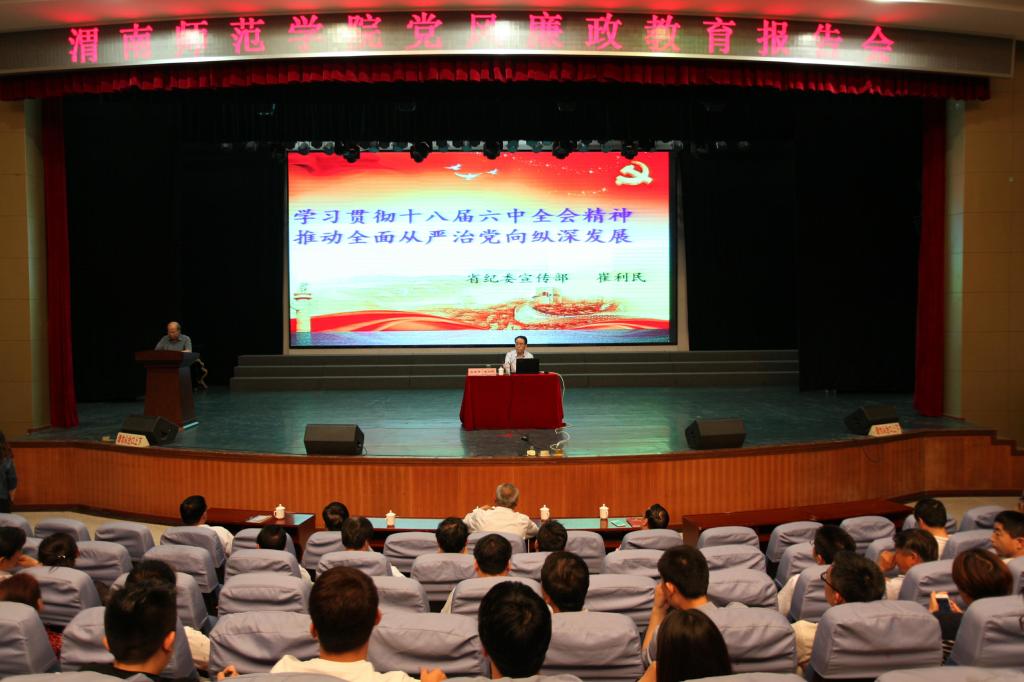 2017年5月17日下午,学校纪委在陶然楼演艺厅举办党风廉政教育报告会,陕西省纪委宣传部部长崔利民应邀作了题为《学习贯彻十八届六中全会精神推动全面从严治党向纵深发展》的专题报告,报告会由学校党委副书记赵伏友主持。