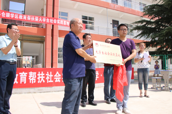 为落实中宣部、中央文明办、教育部、共青团中央《关于进一步加强和改进学生社会实践的意见》的文件精神和省政府“高校结对帮扶贫困县工作会议”精神,充分发挥高校资源优势服务地方各项建设,促进资源共享、共同发展,“一对一”帮扶贫困县开发优势资源,培育经济与文化发展的新动能。7月10日上午,我校与白水县仓颉学区共建大学生暑期社会实践基地揭牌仪式暨“扶学·扶志”快乐成长帮扶志愿者活动在白水县仓颉学区北井头九年制学校全面展开。校党委副书记赵伏友、白水县教育局党委办主任张向智、仓颉学区主任李耀强等出席活动。我校大学生志愿者和仓颉学区的百余名师生及家长参加。