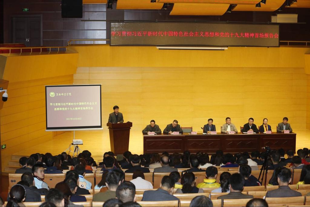 10月30日下午,欧宝娱乐官方app学习贯彻习近平新时代中国特色社会主义思想和党的十九大精神首场报告会在逸夫楼华金音乐厅举行。报告会由院长卓宇主持。