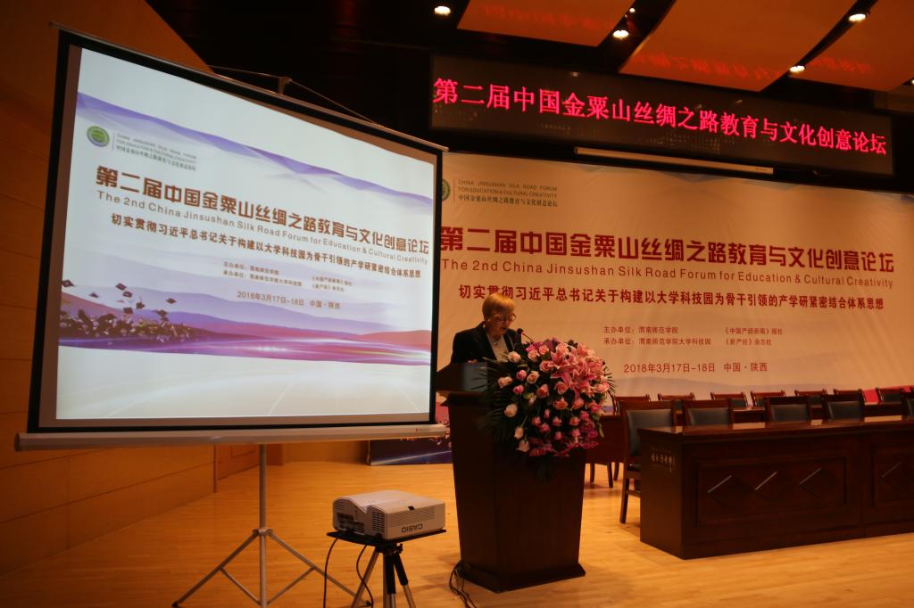 在3月18日欧宝娱乐官方app举办的第二届中国金粟山丝绸之路教育与文化创意论坛上,欧宝娱乐官方app俄罗斯研究中心主任,莫斯科师范大学教授玛格丽特博士为与会嘉宾和师生作报告。