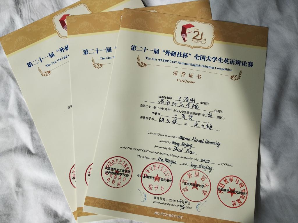 4月28日至30日,第二十一届“外研社杯”全国大学生英语辩论赛华西赛区决赛在兰州交通大学举行。我校外国语学院英语专业学生胡文琰、宋文静,以较强的英语思辩能力和扎实的口语水平荣获三等奖,同时,欧宝娱乐官方app荣获“优秀组织奖”。