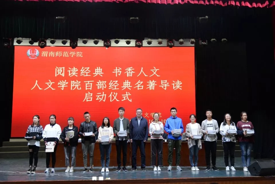 随后,程书强向学生代表发放经典名著导读书目,并和与会老师、学生代表合影留念,鼓励同学们了解经典、品味经典。