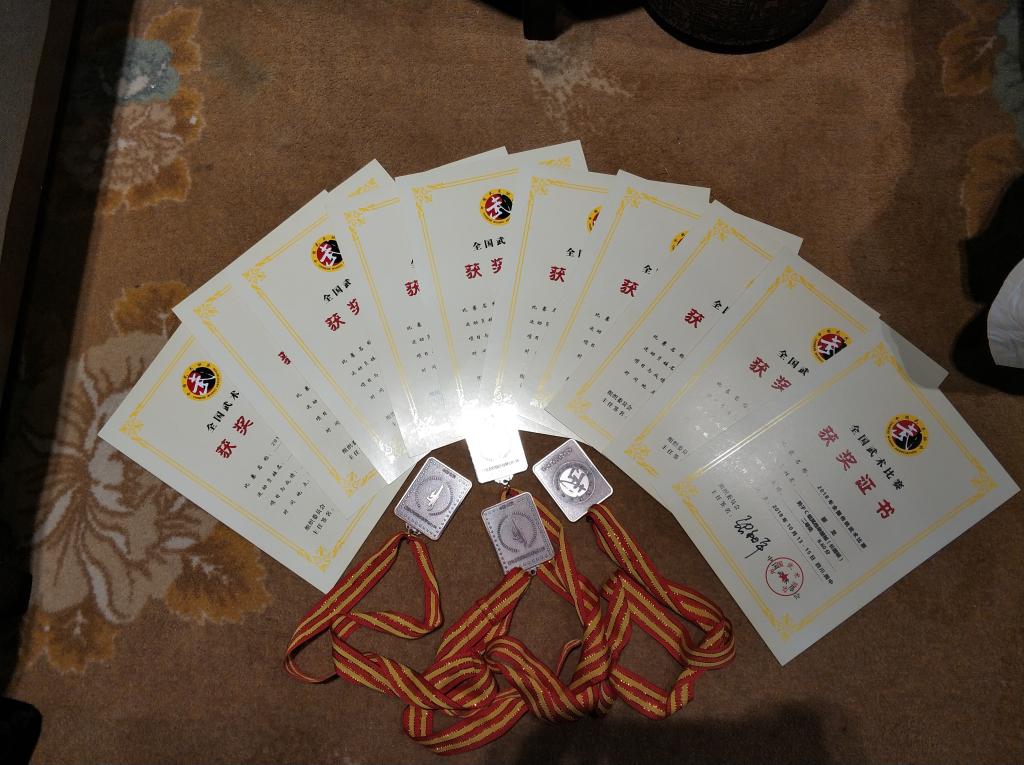 本次比赛是我校首次组队参加全国武术比赛。经过3天的激烈角逐,蔡龙获男子C组长器械项目银牌、一类拳术项目铜牌,冯彦泽获男子C组短器械项目铜牌,张悦凡获男子C组四类拳术项目铜牌,王军被评为“武德风尚奖教练员”,冯彦泽、蔡龙荣获“武德风尚奖运动员”称号。