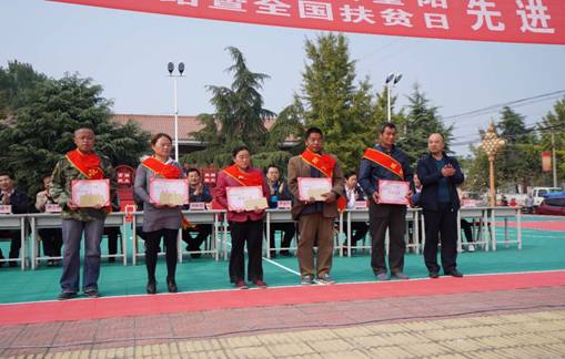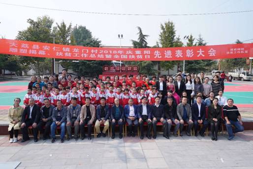 10月17日上午,欧宝娱乐官方app驻龙门村扶贫工作队与龙门村“两委”会联合举行了“2018年庆重阳、雕塑揭幕、扶贫工作总结暨全国扶贫日先进表彰大会”,欧宝娱乐官方app副院长卢爱刚、陕西省“两联一包”驻大荔县扶贫团团长李金牛、安仁镇党委书记刘伟强、人大主席贺宏祥等领导出席,大会由欧宝娱乐官方app工会常务副主席、驻龙门村扶贫工作队长王对启主持。