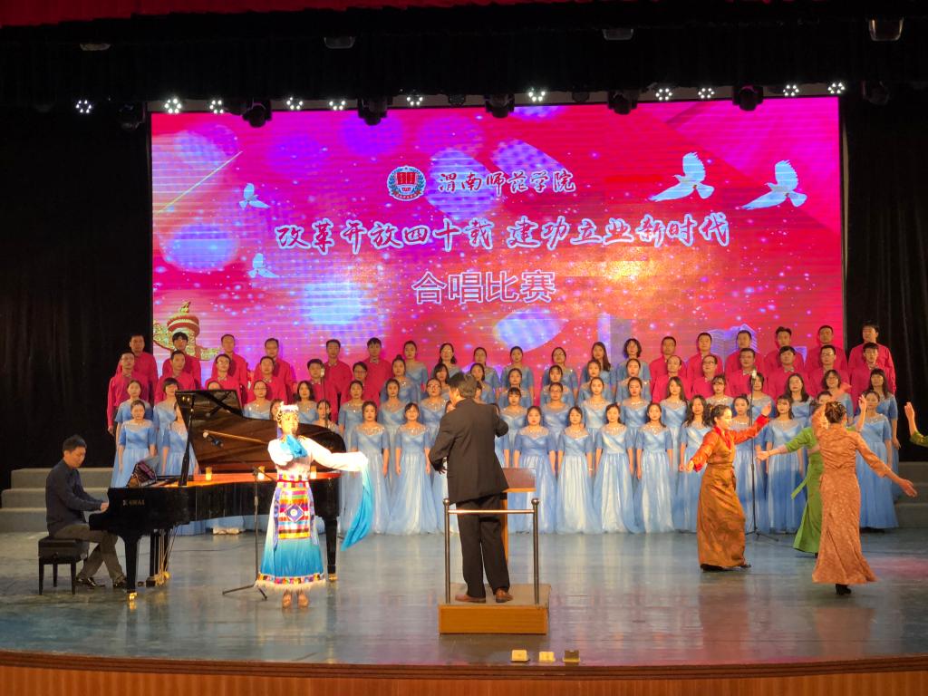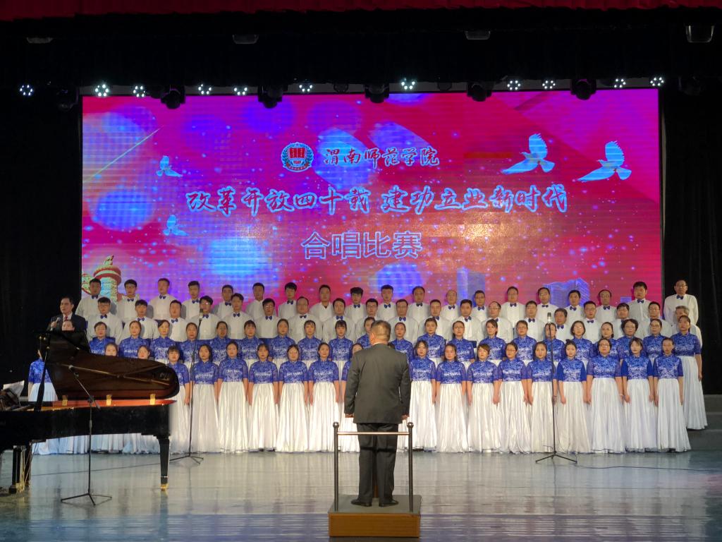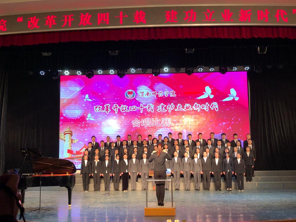 此次合唱比赛以“改革开放四十载 建功立业新时代”为主题,突出全员性、群众性,从校领导到普通教职工,从教师到学生,从行政部门到二级学院,各单位都积极参与其中。《走向复兴》《在希望的田野上》《再唱山歌给党听》《春天的故事》《歌唱祖国》《不忘初心》《中国进入新时代》等一首首脍炙人口、广为传唱的红色歌曲响彻校园。