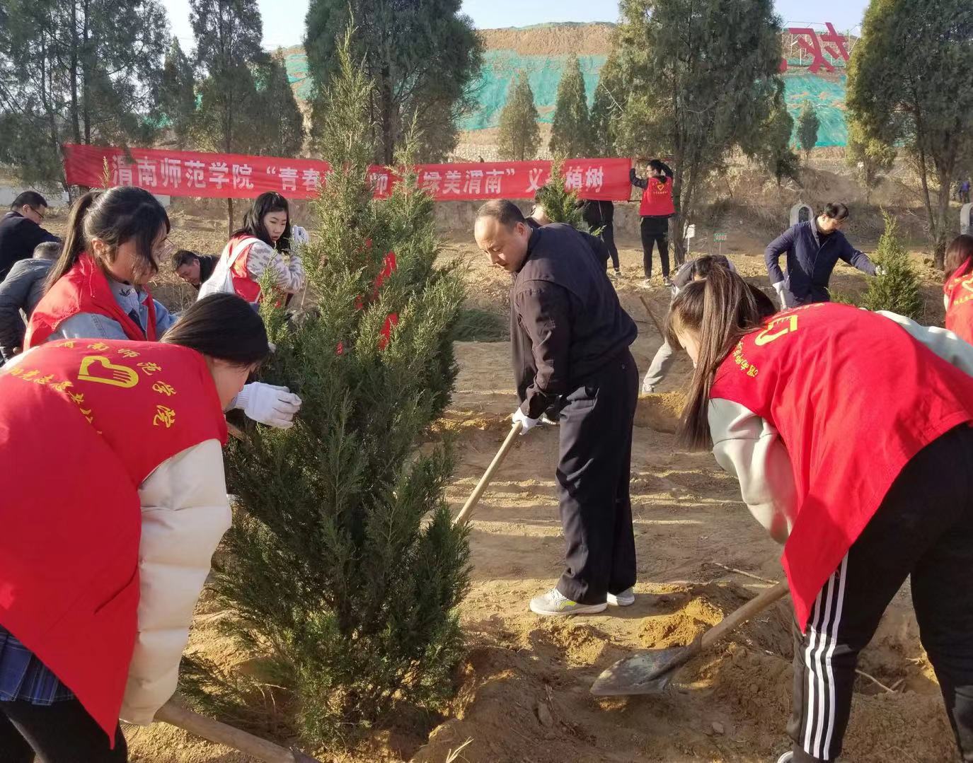 植树现场一派热火朝天的景象。在渭南市林业局技术员的指导下,学生志愿者领取、运送树苗,卓宇书记和赵曼校长同大家一起清理树坑,回填虚土,按照“三埋两踩一提苗”的植树标准,扶苗、培土、踩实、围堰。植树间隙,卓宇书记和赵曼校长不时关心地询问学生志愿者的学习、生活和参与学校义务劳动的情况,勉励同学们按照习近平总书记在全国教育大会上提出的“要在学生中弘扬劳动精神,教育引导学生崇尚劳动、尊重劳动,懂得劳动最光荣、劳动最崇高、劳动最伟大、劳动最美丽的道理,长大后能够辛勤劳动、诚实劳动、创造性劳动”的要求,积极参加劳动,努力成长为德智体美劳全面发展的社会主义建设者和接班人。按照此次义务植树的安排,我校共完成46株蜀桧树苗的栽植任务,渭南市林业局向我校发放了合格证书。