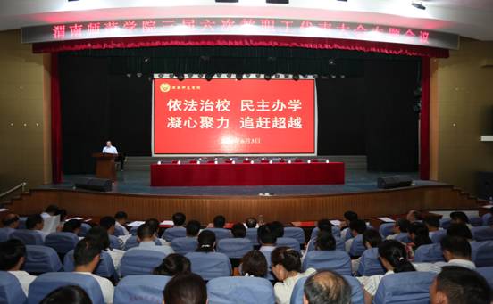 6月3日、6月5日,我校召开三届六次教代会专题会议。审议通过了《关于学校利用汉马校区与渭南市教育投资发展有限责任公司合作举办附属学校事项的报告》、《关于调整“十三五”事业发展核心指标的说明》。校工会副主席王对启主持,全校121名代表参会。