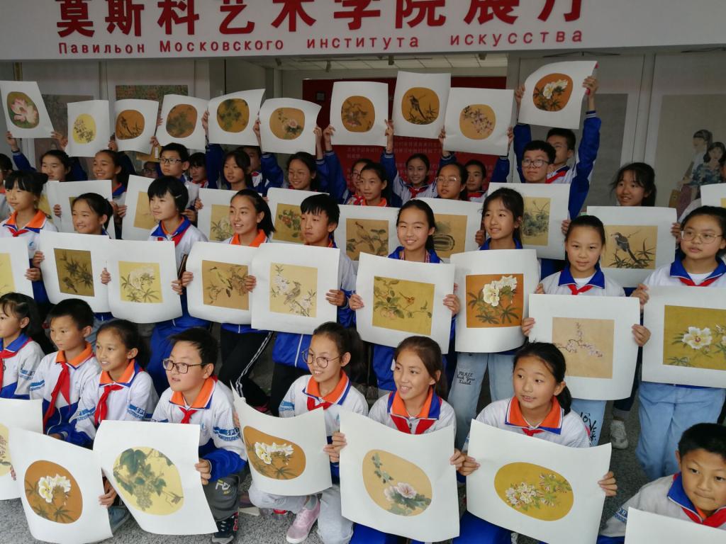 志愿者带领小学生参观我校美术学院毕业生作品展,美术学院师生赠予每位学生一副美术作品,四年级建档立卡学生贺思雨收到作品后激动地说:“我长大也要学习画画,也要像哥哥姐姐们一样办画展”。参观完画展后,小学生们参观了我校合作办学机构莫斯科艺术学院,在钢琴教室大学生为小学生们演奏了《拉德斯基进行曲》,俄罗斯外教伊丽娜·纳格莱特为小学生们演唱咏叹调《意大利女郎在阿尔及尔》和俄罗斯儿童歌曲《蓝色马车》。七年级学生刘欢欢说:“这是我第一次现场听外籍老师唱歌,非常感谢你们提供给我这样一次机会”。