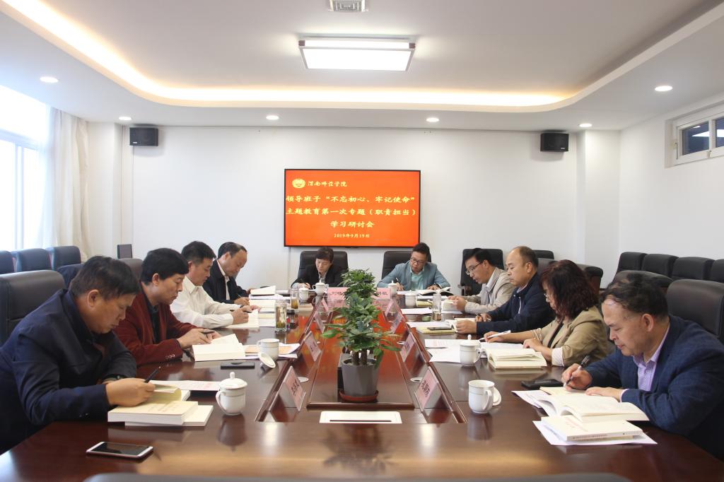 9月19日下午,学校党委召开"不忘初心、牢记使命"主题教育第一次专题(职责担当)学习研讨会。省委巡回指导组刘晓燕出席研讨会,党委书记卓宇主持会议。