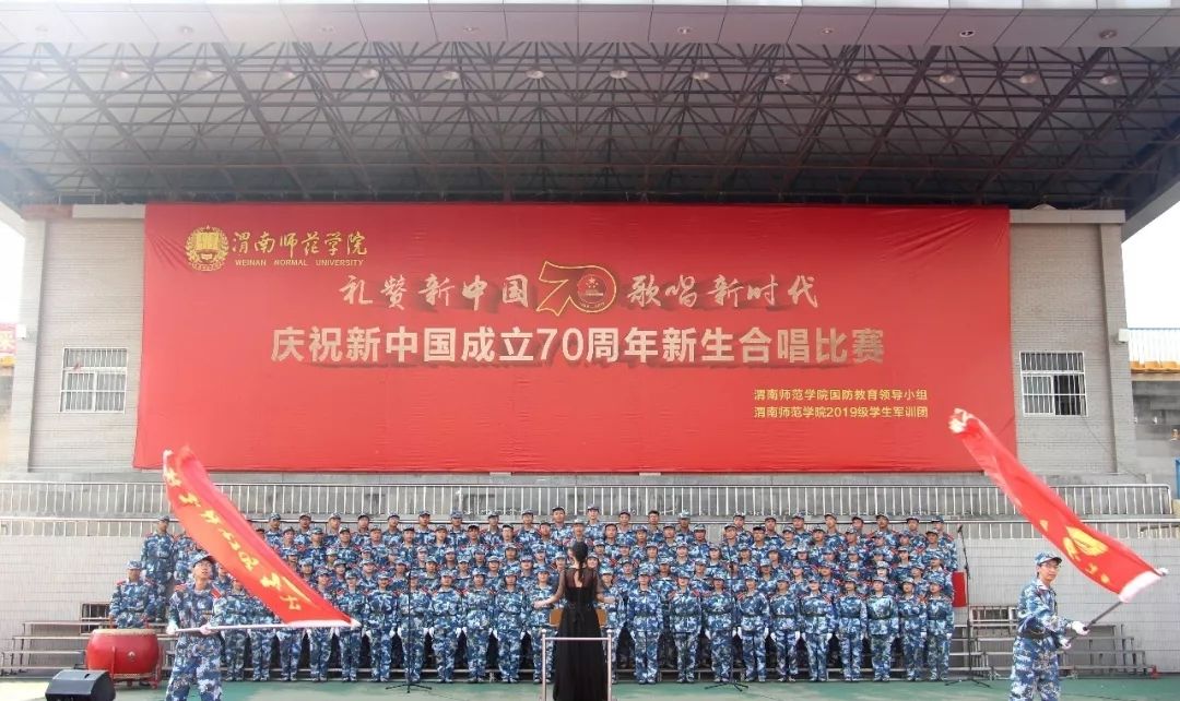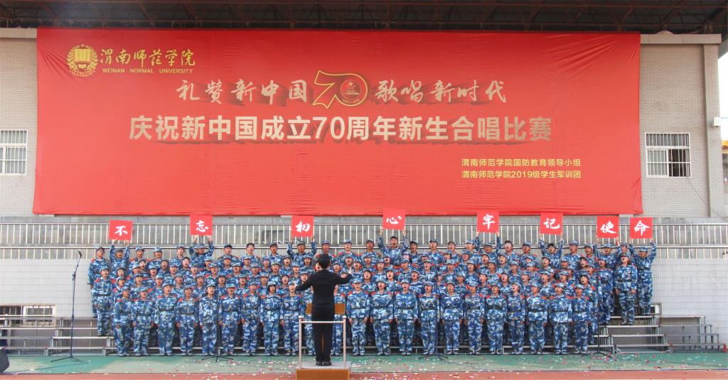 为庆祝新中国成立70周年,激发青年学生奋斗、奉献的爱国情怀,展现渭师学子的蓬勃朝气和青春风采。我校于9月23日在田径场举办“礼赞新中国 歌唱新时代”庆祝新中国成立70周年新生合唱比赛。校党委副书记任健、副校长王菊霞,国防教育领导小组成员单位负责人和各二级学院相关领导出席活动。