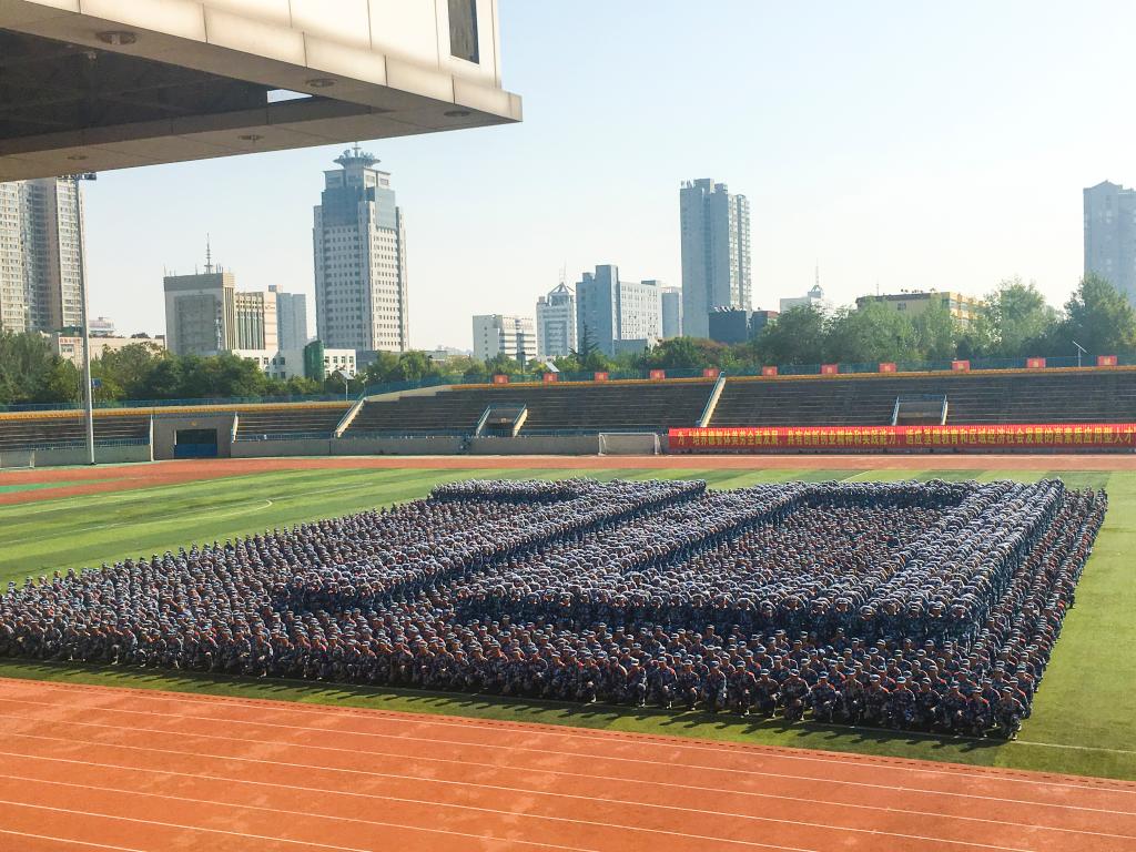 在军训团副团长荆立哲的统一指挥下,受训新生们分别进行了格斗术和“活字”方阵表演。首先,紧锣密鼓中,四千余名学子们迅速由方阵变换为格斗术阵型,在教官的统一指令下,学子们动作标准,喊声震天,气势磅礴,一气呵成。精彩的表演赢来了主席台和观众的阵阵掌声。随后,方阵变换为正方形,学子们摆出“渭师”“1949”“2019”“70”“中国”等造型并高呼“渭南师院、不忘初心、牢记使命、教书育人、报效祖国”。最后,四千余名参训新生共同高歌《我爱你,中国》,将汇报表演推向高潮。表演展现出蓬勃昂扬的精神面貌和英勇顽强的战斗作风,赢得了参会领导和师生的阵阵热烈掌声,展示了15天的军事训练成果。