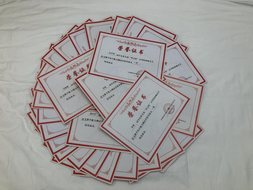 10月11-14日,2019年微格教学论坛暨第九届“华文杯”高等院校师范生(语文)教学能力测试与交流展示活动在潍坊学院举行,我校再创佳绩。由人文学院副院长赵前明和陈西洁副教授带队的欧宝娱乐官方app代表队,5名学生参赛,获教学设计一等奖五项,教学技能一等奖四项、教学技能三等奖一项。