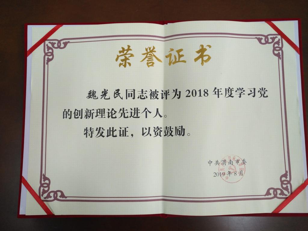 我校经济与管理学院党总支书记魏光民荣获“2018年度渭南市学习党的创新理论先进个人”称号-欧宝娱乐官方app