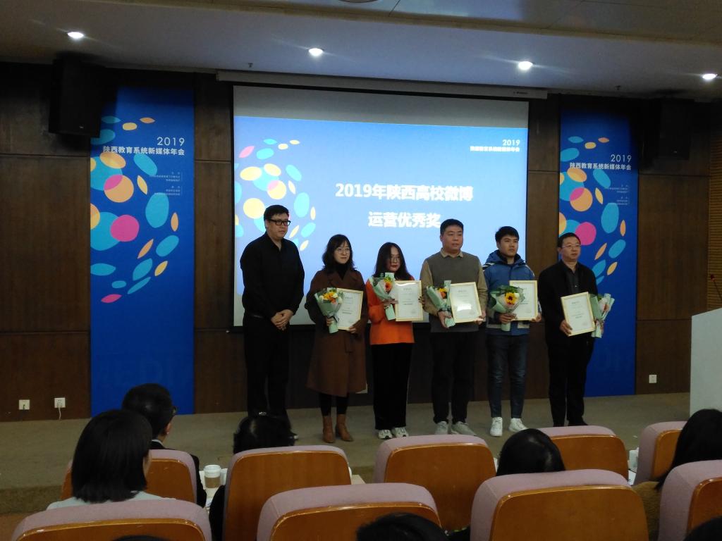 1月9日下午,由陕西省委教育工委、陕西省教育厅主办,西安欧亚学院和陕西省教育新媒体研究院承办的2019年陕西教育系统新媒体年会在西安欧亚学院举行。我校荣获2019年度陕西高校微博运营优秀奖。这是继2017年获陕西高校新媒体运营优秀奖(微博)和2018年获陕西教育新媒体矩阵建设奖后我校第三次获该类新媒体工作奖项。
