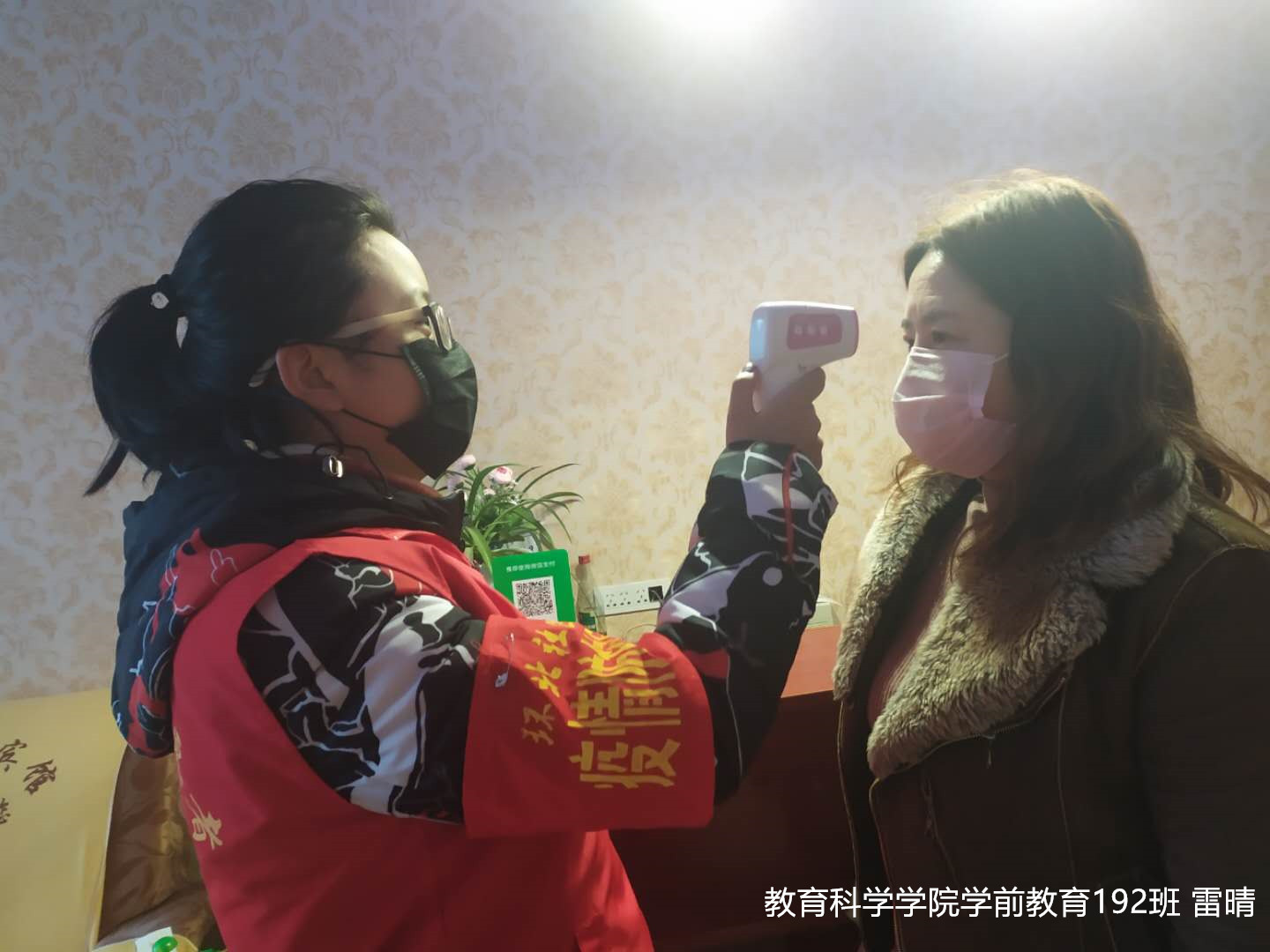 雷晴,教育科学学院学前教育192班学生。她志愿参与合阳县环北社区防疫工作,担任疫情防控员,在社区各巷口悬挂防疫横幅,制作街道办的防疫知识板报,负责凤凰北路东清步行街的入户排查任务,积极进行室内消毒和居民体温检测及防疫知识普及,每日入户100余家,确保辖区内每个村(社区)、每个小区、每户家庭疫情防控工作到位。她说:“面对不断发展的疫情,要用阳光的笑容冲散疫情的阴霾,用行动的力量彰显我们青年的使命。”