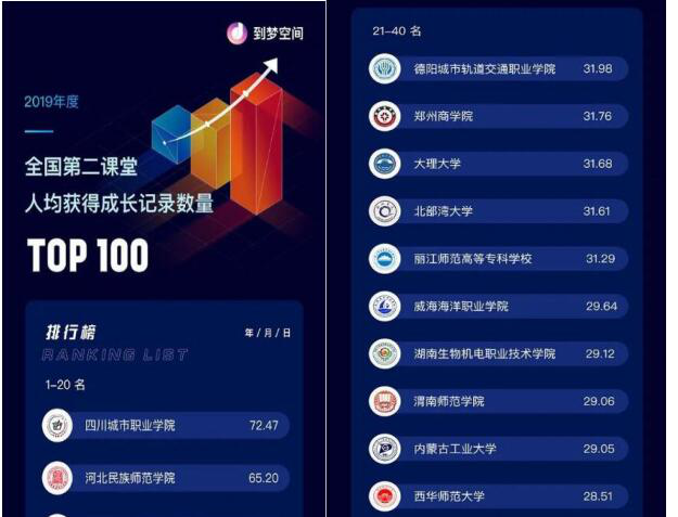 我校在全国高校第二课堂人均获得成长记录排名中位列第28名