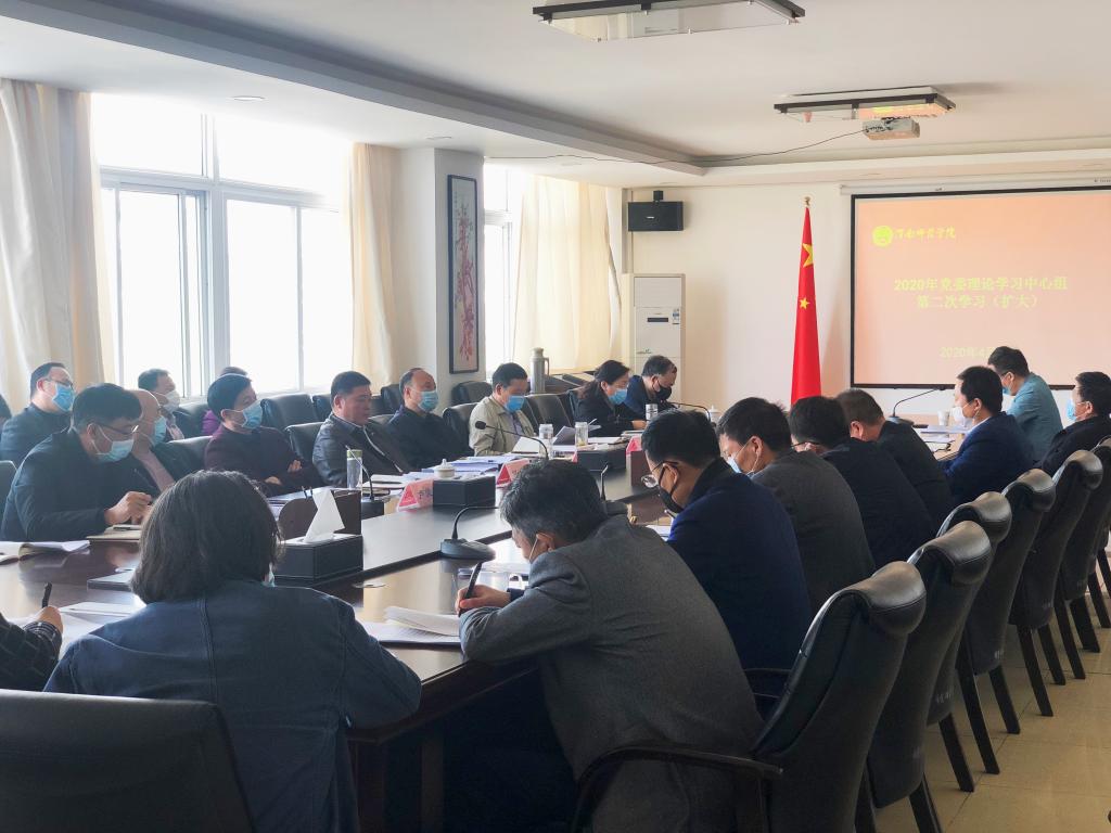 4月8日上午,学校党委理论学习中心组在厚德楼第二会议室举行2020年第二次学习(扩大)会,全文学习了中共中央办公厅3月发布的《党委(党组)落实全面从严治党主体责任规定》(以下简称《规定》),传达了习近平总书记在决战决胜脱贫攻坚座谈会上的讲话精神和省委胡和平书记在我省脱贫攻坚会议上的讲话精神,梳理了习近平总书记近期有关统筹推进疫情防控与经济社会发展的讲话,重温了习近平总书记给在首钢医院实习的西藏大学医学院学生的回信和给北京大学援鄂医疗队全体“90后”党员的回信。党委书记卓宇主持学习会。