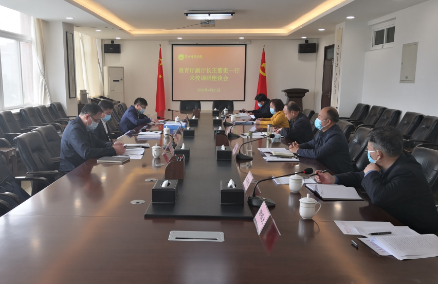 4月21日上午,省教育厅副厅长王紫贵在教育厅学工部(学生处)部(处)长唐澍、学工部(学生处)二级调研员胡伟安的陪同下,来我校调研指导毕业生就业、疫情防控期间安全稳定工作和开学准备等工作。校长赵曼,副校长卢爱刚、王菊霞等会见并一同调研。