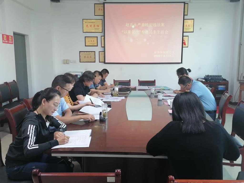 8月31日,音乐学院党总支召开赵正永严重违纪违法案以案促改专题民主生活会。党委委员、副校长曹强,督导组宋威到会指导,音乐学院全体处科级干部参加会议。会议由党总支书记白锐主持。