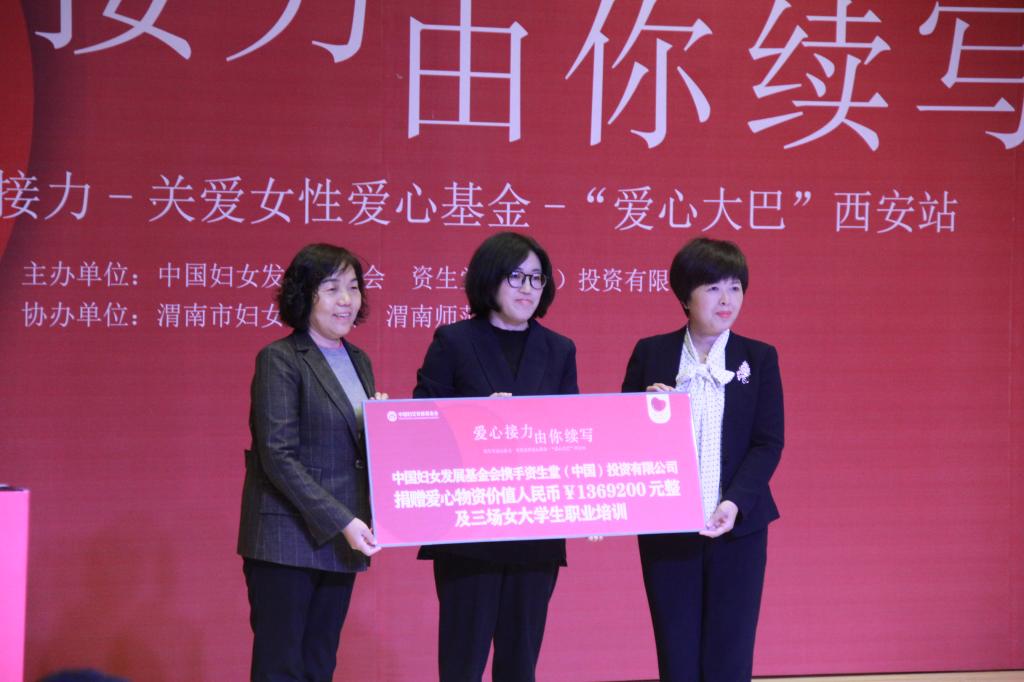 中国妇女发展基金会向渭南市妇联和我校进行了爱心礼盒捐赠。