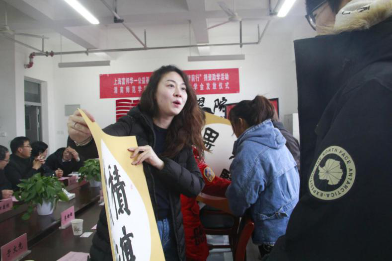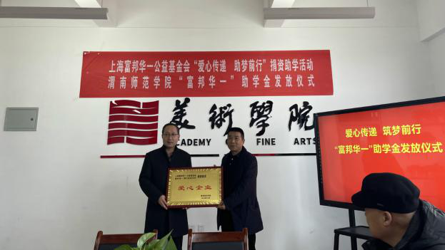 随后,我校学生工作部部长陈景西与简晓鹏作为双方代表签订助学金捐赠协议。国际合作与交流处处长杜百顺代表学校向爱心企业进行授牌。美术学院受助学生向来宾赠送了个人书法习作,表达了受助的感激之情。美术学院受助学生代表赵钰涵表示,日后将更加刻苦学习,积极参与实践,全面提升个人能力与综合素质,成为德智体美劳全面发展的社会主义合格建设者和可靠接班人。