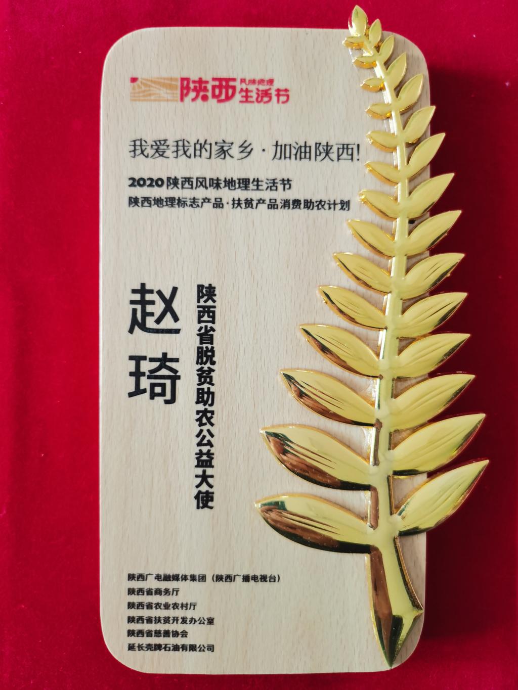 近日,“我爱我的家乡·陕西风味地理生活节”在西安市高新区嘉会国际交流中心开幕。我校驻大荔县安仁镇龙门村第一书记赵琦在活动现场被授予“陕西省脱贫助农公益大使”荣誉称号,并参加网络直播,推销“带货”,助力产业脱贫、消费扶贫。