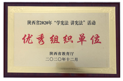 近日,陕西省教育厅印发了《关于表彰2020年“学宪法 讲宪法”活动优秀学生、优秀指导教师和优秀组织单位的决定》(陕教〔2020〕214号),我校荣获“优秀组织单位”,也是此次活动受到表彰的5所高校之一。