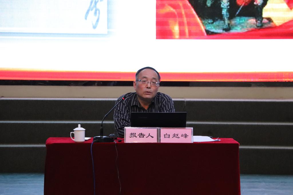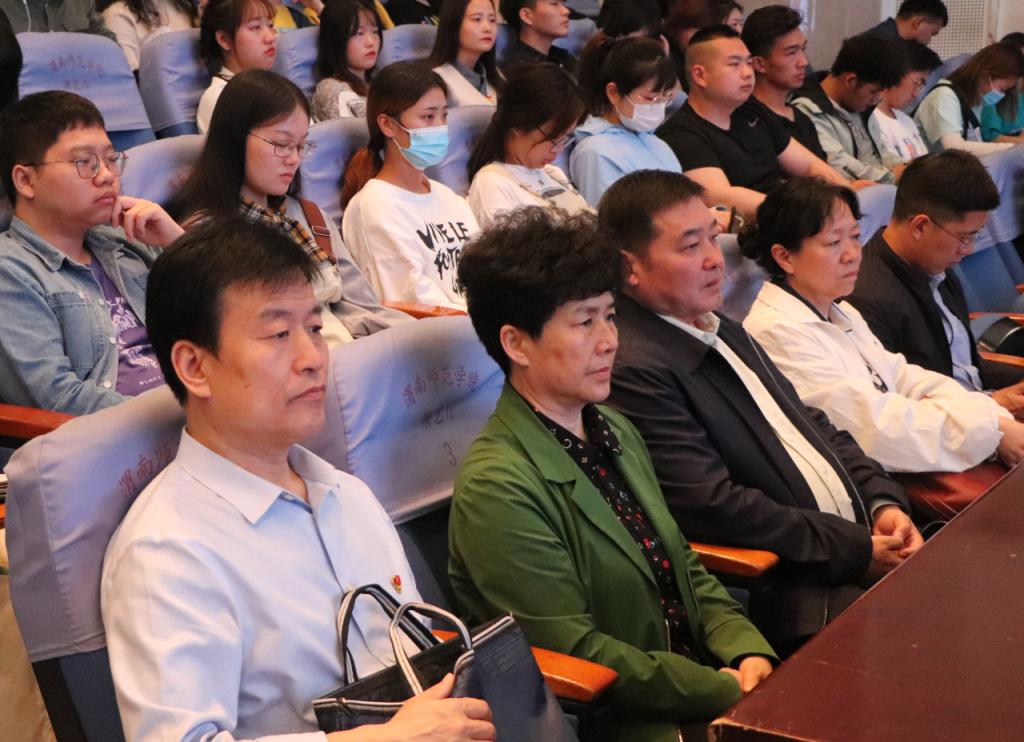 5月7日下午,我校围绕“深刻感悟中国共产党始终不渝为人民的初心宗旨”举办党史学习教育专题辅导报告会。学校党史学习教育宣讲团成员、马克思主义学院院长白赵峰教授作了题为《以中国梦擘画复兴蓝图》的辅导报告。省委党史学习教育第十三巡回指导组一行莅临报告会现场旁听指导。