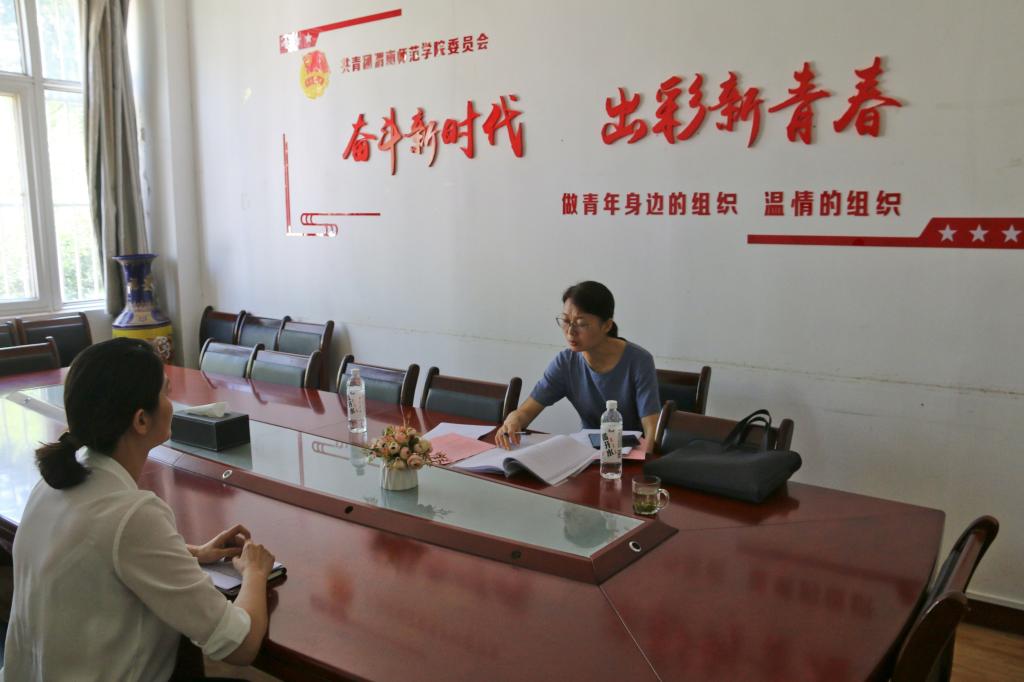 座谈会后,郝鹏涛和陈梅分两组对我校团建示范创建主要负责同志,专职团干部代表和学生代表进行访谈。同时,对团建示范创建工作支撑材料进行查阅。专家组与我校团学干部就共青团工作思想政治引领、服务学生成长成才、基层团组织建设及特色做法等进行了深入交流,详细了解工作开展情况,并考察参观了校团委、校学生会等团学工作阵地,实地感受我校各级团学组织工作的良好精神风貌。