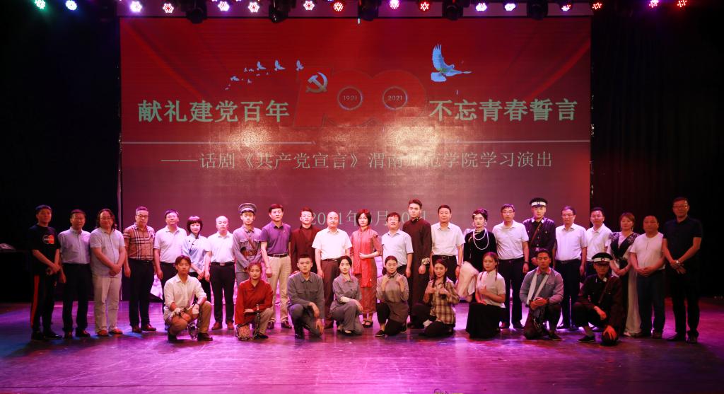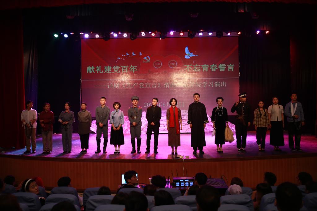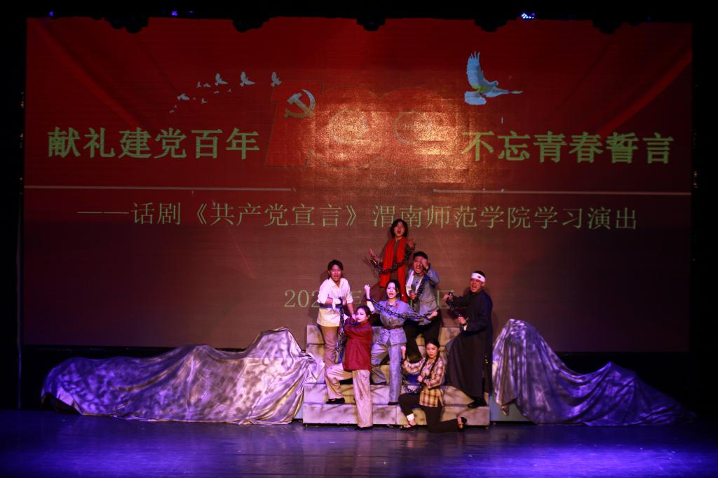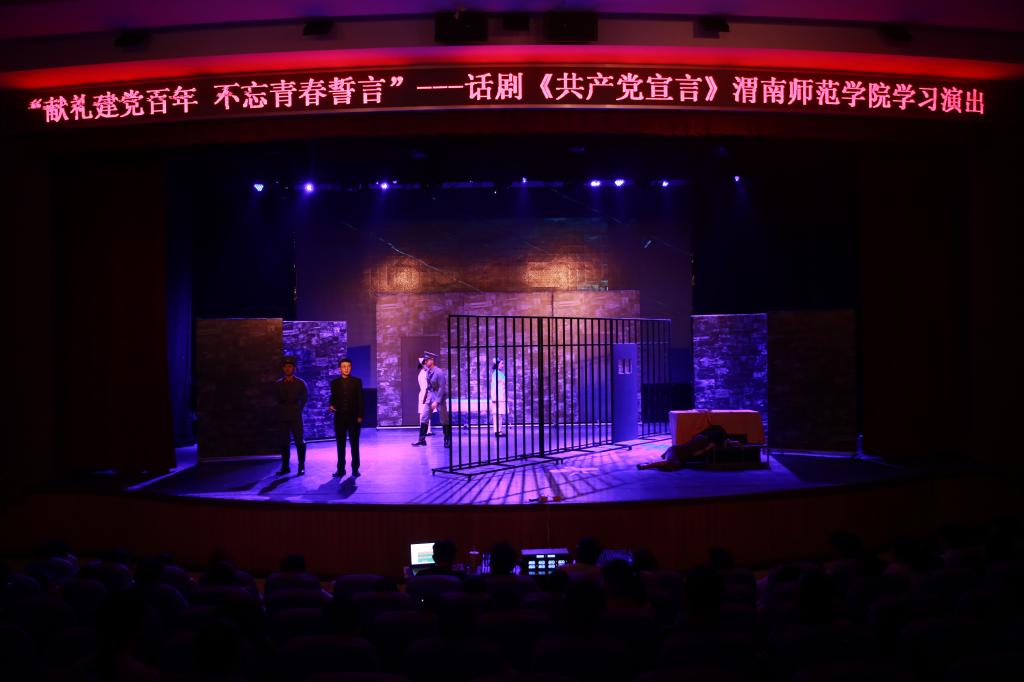 为庆祝中国共产党成立100周年,深入贯彻落实习近平总书记在党史学习教育动员大会上的重要讲话精神,引导我校师生从百年党史中接受政治淬炼、汲取精神力量、领悟先进思想,6月10日,由陕西省委宣传部、陕西省委教育工委和共青团陕西省委主办,我校党史学习教育领导小组办公室、团委、音乐学院党总支承办的“献礼建党百年 不忘青春誓言”——话剧《共产党宣言》欧宝娱乐官方app学习演出在学校朝阳校区首演。