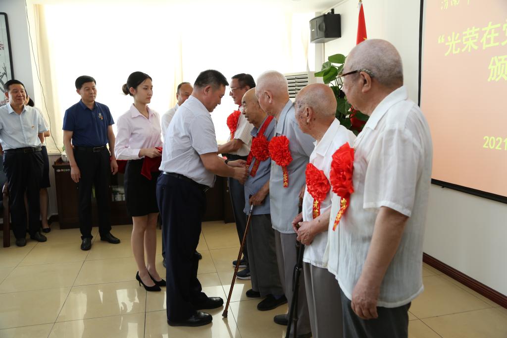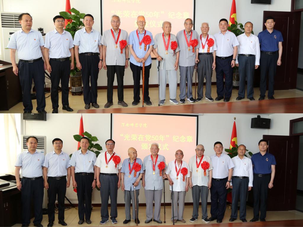 获得“光荣在党50年”纪念章的老党员代表,学校党委组织部、离退休党总支工作人员参加了颁发仪式。(通讯员 马雷蕾 李维喆  审核人 凌朝栋)