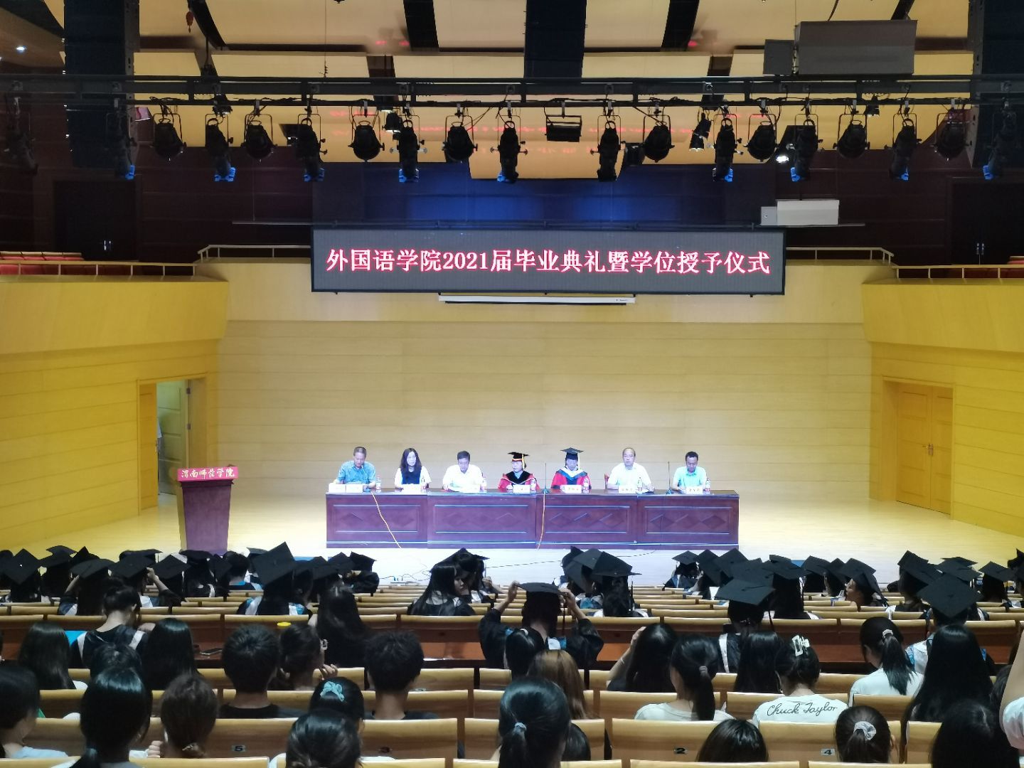 6月29日,外国语学院举行2021届毕业生毕业典礼暨学位授予仪式。副校长王菊霞出席仪式,毕业典礼由党总支书记吕健主持。