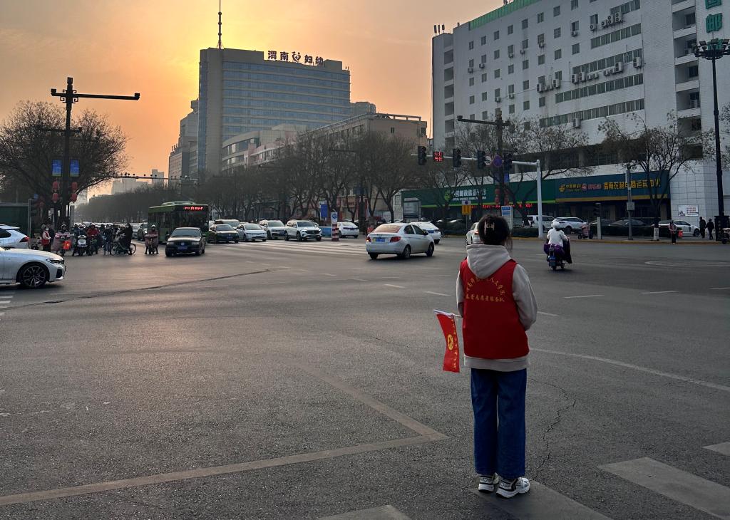 自3月6日起,学校学生志愿者身着红色马甲,在渭南城各路口于早、中、晚三班次开展路口站岗执勤活动。