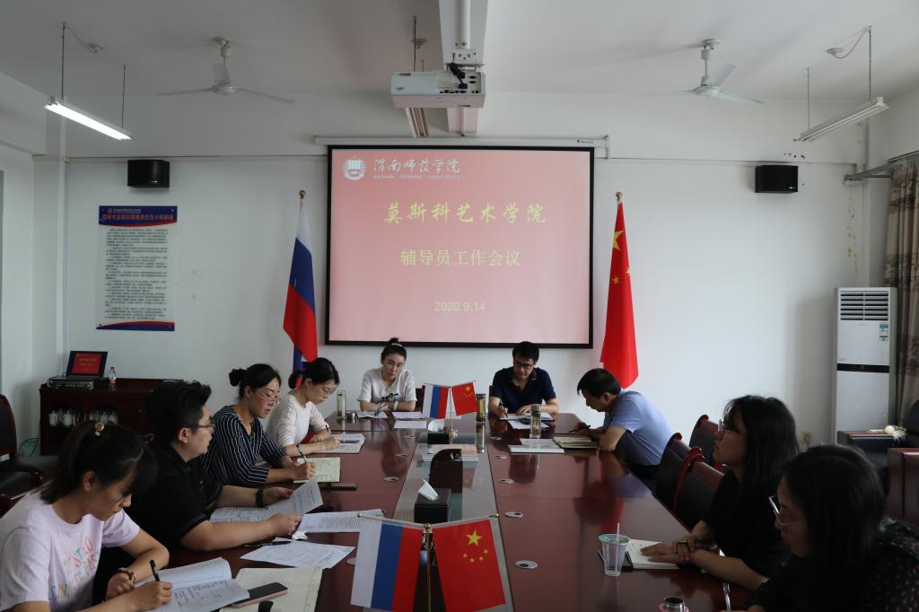 9月14日上午,莫斯科艺术学院召开“创建文明校园 提升劳动教育”辅导员工作会议,学院党总支书记席景奇、执行院长梁晶、党总支副书记孟波及全体辅导员参加会议,会议由席景奇主持。