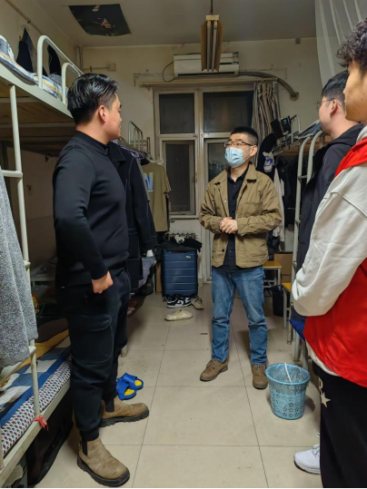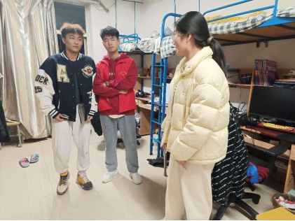 辅导员一行还重点检查了宿舍卫生和安全用电等情况,叮嘱同学们注意开窗通风、环境卫生、保证床单被褥及生活用具整洁,严禁宿舍使用大功率电器行为。为更好地预防春季流行病,辅导员向同学们宣传了相关知识,同时对食堂用餐、疾病治疗、请假外出等情况提出了具体要求,并鼓励大家放下手机、走出宿舍、走向操场,加强身体锻炼,提高身体素质。毕业班辅导员与毕业生在毕业设计、就业、考研复试等方面进行了深入交流,针对存在的困难提出了合理建议,同时动员学生党员引导同学树立正确的就业观。