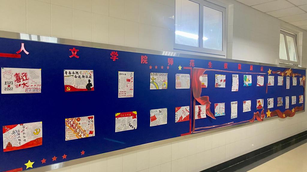 学生们以富有表现力的画笔,全方位、多角度描绘中国共产党领导下的革命英勇斗争场面和社会主义建设取得的伟大成就,每一份作品都饱含着对中国共产党和伟大祖国的无限热爱和美好祝福。人文学院将分批次择优在博识楼2层将同学们提交的手抄报进行展示。