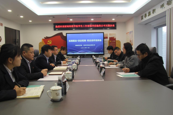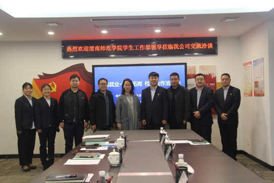田耿辉一行先后参观了公司各部门及群团组织办公室,深入了解公司基本情况、组织架构、日常活动开展等。参观完毕,校企双方就人才共育、资源共建、实践就业等相关合作事宜召开洽谈会。