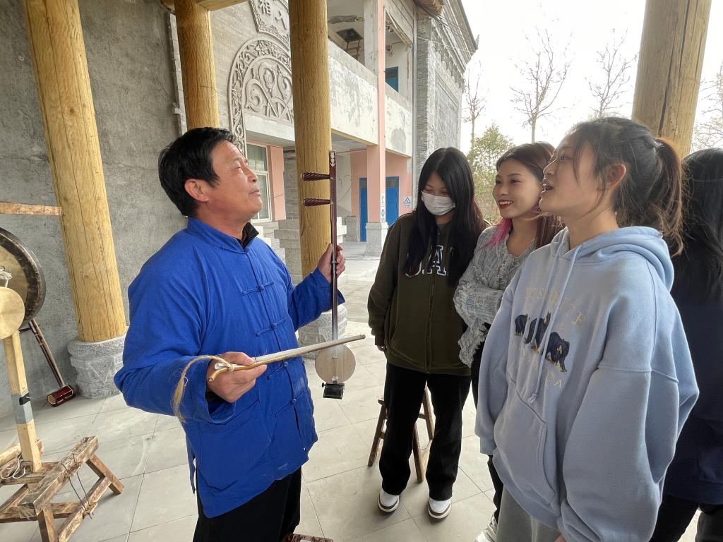 在老腔艺术发展保护中心主任柴文红、副主任李毅君的带领下前往华阴老腔传承基地参观交流。华阴老腔艺术团的老艺人们首先为师生们表演了华阴老腔经典唱段《将领一声震山川》,也以此节目作为师生们今天参观交流的开场仪式。
