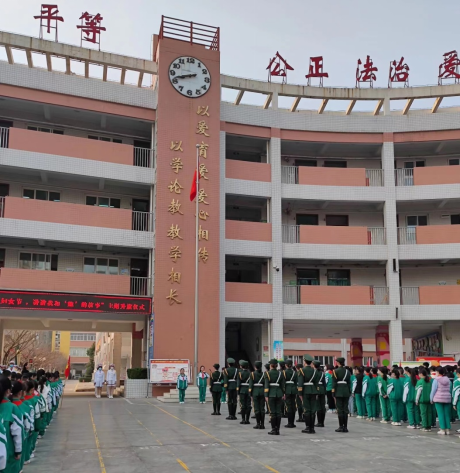 3月6日上午8时许,欧宝娱乐官方app国旗护卫队队员身姿挺拔,步伐整齐,列队抵达渭南市实验小学。在雄壮的国歌声中,升旗手挥手飘扬起国旗,鲜艳的五星红旗迎风飘扬。少先队员和国旗护卫队队员们同时敬礼,全校师生一同注视着五星红旗缓缓升起,仪式热烈而隆重。