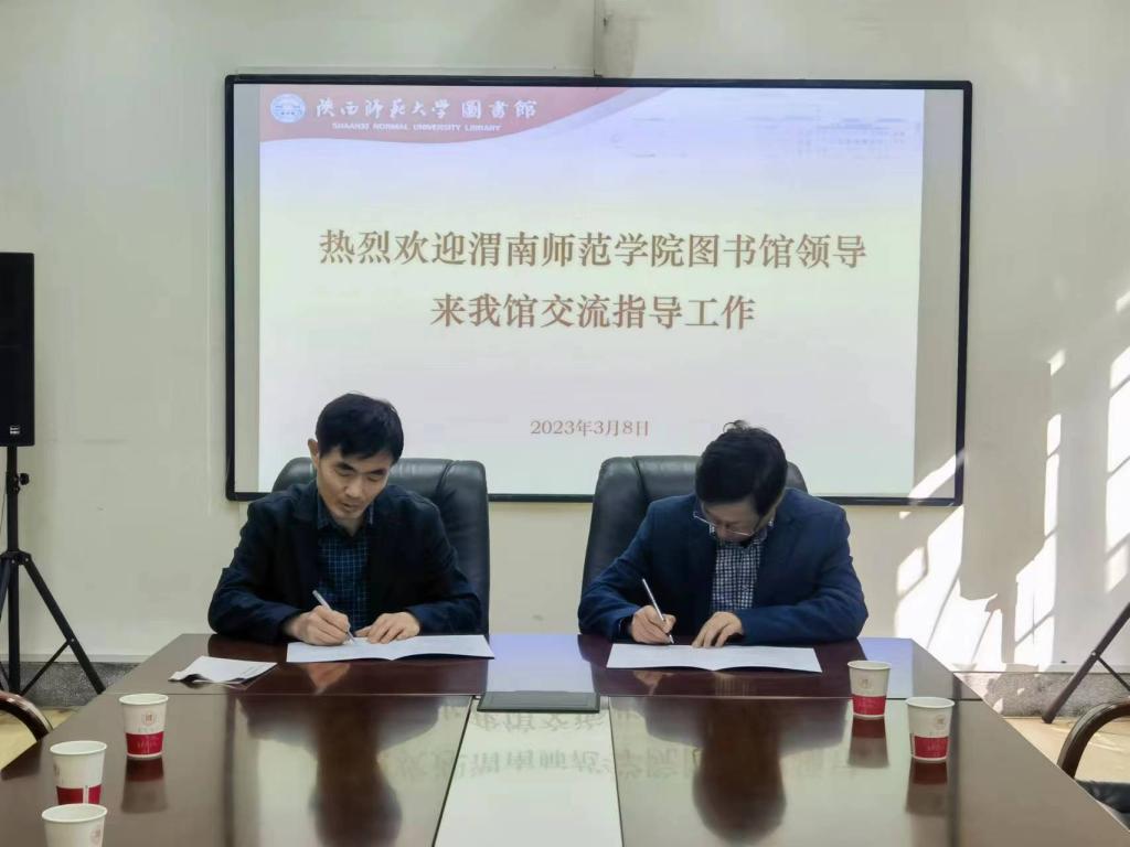 3月8日上午,赴陕西师范大学图书馆学习调研,副馆长田向阳热情地接待了来访人员,详细地介绍了陕西师范大学图书馆情况,在充分交流的基础上,就“资源共建共享”达成了一致,双方签订了《陕西师范大学图书馆与欧宝娱乐官方app图书馆资源共建共享协议》。随后,相关人员就纸质期刊订购、纸质图书资源建设等问题进行了学习交流。