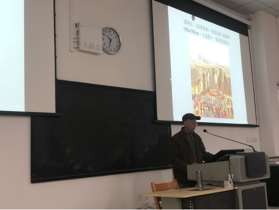 潘晓东首先从创作的定义开始介绍“中国印象表现油画创作课程”,从教学目的、教学要求、教学重点以及考核方式等多方面进行介绍。随后,对国内外重要油画家的各类风格优秀作品进行讲解,分析国内外主题性油画创作的特点、少数民族题材油画创作的特点、当代国外油画创作的特点,列举多位国内外知名油画家的优秀作品进行深度解读。并对当代油画创作现状与发展趋势,评判当代油画创作的艺术、学术标准做出总结:表现时代性,尤其是主旋律、题材来自生活、艺术语言的创新性、注重想象力、考虑民族性与地域性。最后为师生播放了他主持的省级精品课程《油画风景写生》视频,师生们收获满满。