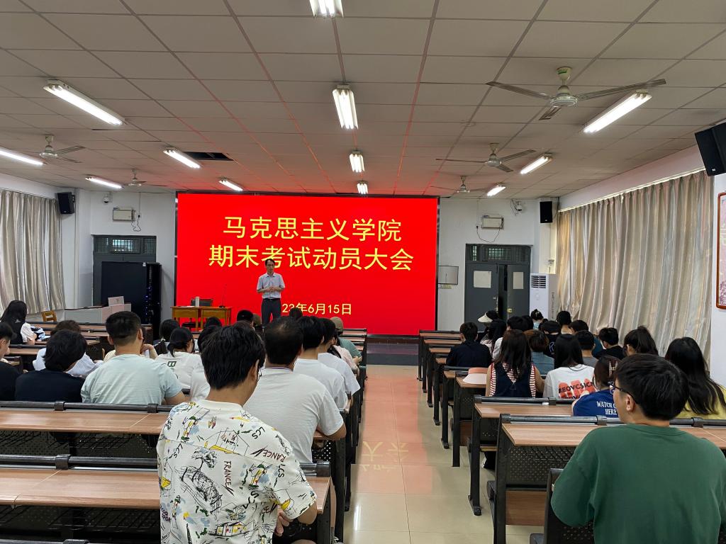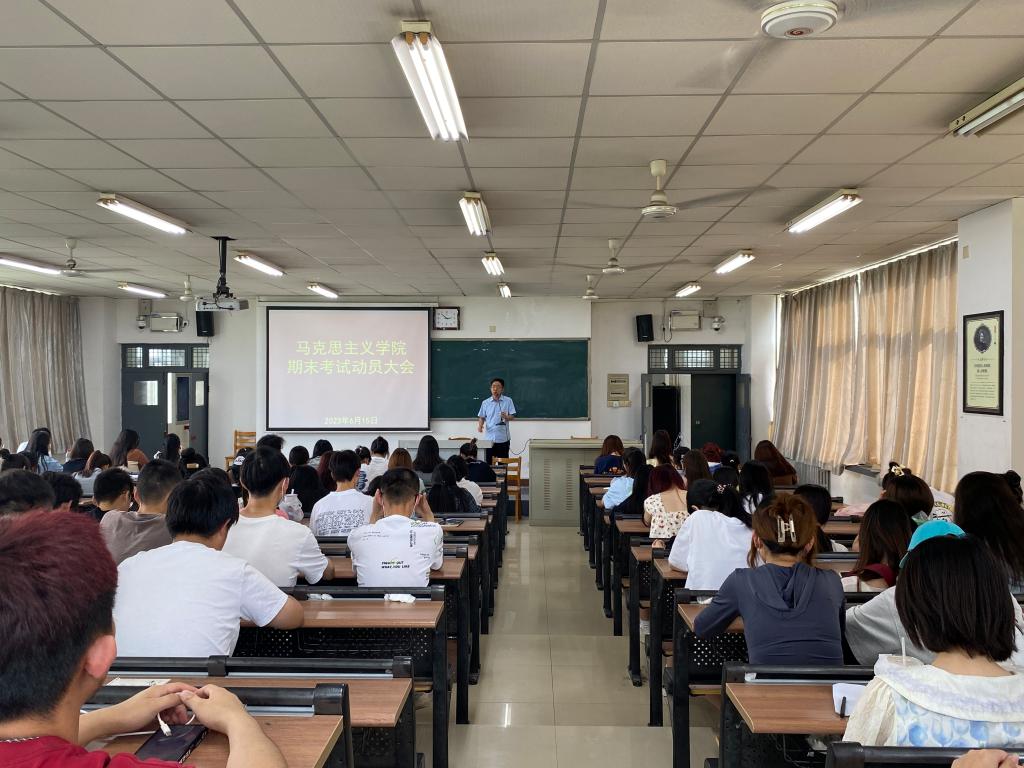 6月15日下午,马克思主义学院党政党政负责人包联各年级,分别在1101、1401、1601教室召开期末考试动员会,其中,党总支书记赵国峰包联2022级学生、院长张萍包联2021级、副院长单剑峰包联2020级学生,辅导员和班主任参加。