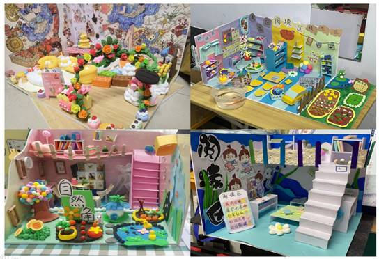 “环创巧育人” 展示区,展出环创作品40余幅,是本学期阴光艳老师、石洁老师、崔莹莹老师《学前教育机构教育环境创设(设计)》课程教学实践成果,由学前教育专业21级学生创作完成。环境作为“第三位老师”,作为幼儿园的一种隐形课程,应具有教育、记录的功能,此次“环创巧育人”即是基于此种理念。同学们在创作过程中精准的掌握了环境创设的核心内容,通过区角作品、主题墙作品、活动区作品进一步强调了环境的“中介和桥梁”作用。