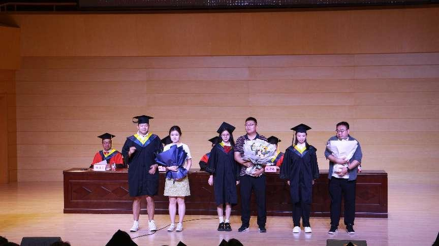 仪式上,3名毕业生代表向毕业班辅导员献花,向一直以来无私奉献的“护花使者”表达了爱戴与感恩之心。