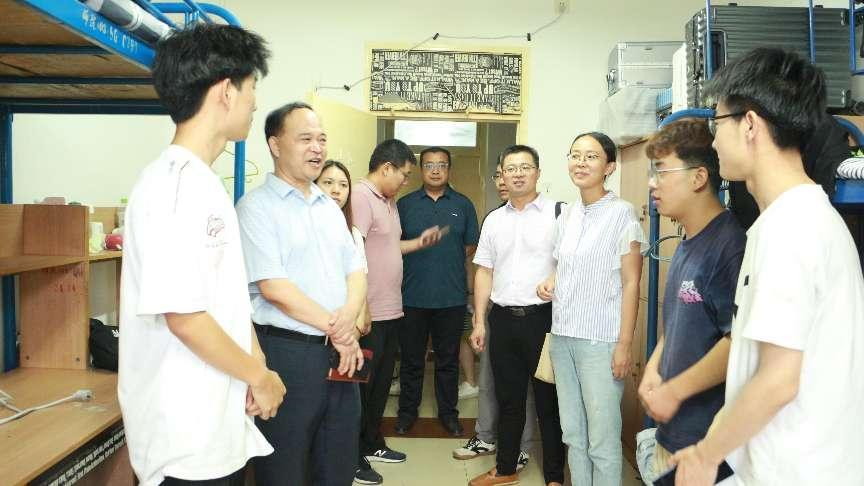 9月9日晚,学校党委委员、副校长常青林、数学与统计学院院长陈斌、党总支副书记张菊梅、副院长赵教练、辅导员以及班主任一同前往新生宿舍了关心慰问刚入学的2023级新生,了解其思想、学习、生活等情况。
