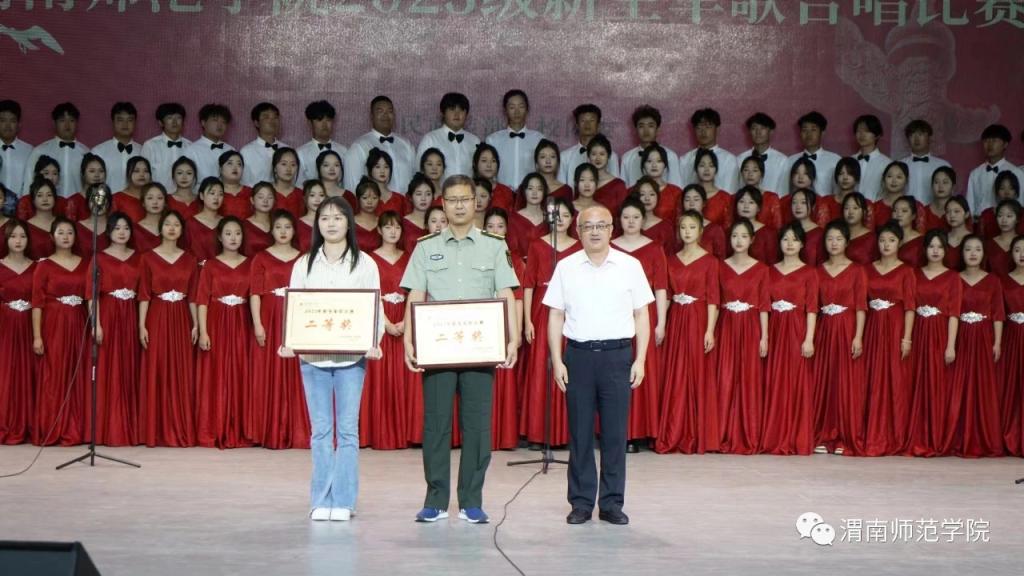 9月22日,我校“唱响强军之歌、捍卫盛世中华”2023级新生军歌合唱比赛分别在朝阳和富平两个校区隆重举行。校党委副书记韩小卫、汪勇、袁亮,校党委委员、宣传部部长李明敏出席活动。
