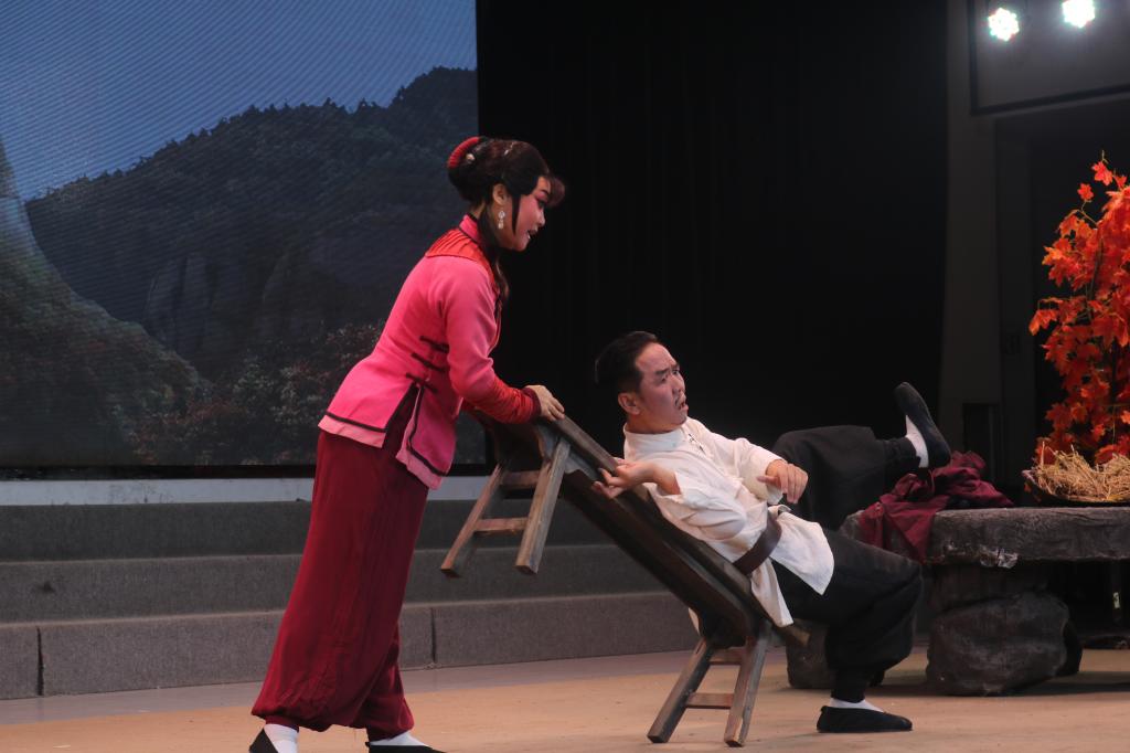 下午16时,大型红色现代戏《红梢林》在陶然楼演艺厅正式拉开帷幕。剧组全体演职人员以娴熟高超的演技巧、节奏分明的情感拿捏、丰富多彩的人物造型,刻画了一个个灵动鲜活、惟妙惟肖、栩栩如生的人物形象,为现场师生带来了一场视听盛宴。整个演出过程精彩纷呈,演员们的精彩演出不时赢得了师生们的阵阵掌声。传神动情的表演,清悠秀婉的唱腔,声情并茂,让师生们看得津津有味,深深地感受到了中华戏曲艺术的无穷魅力。